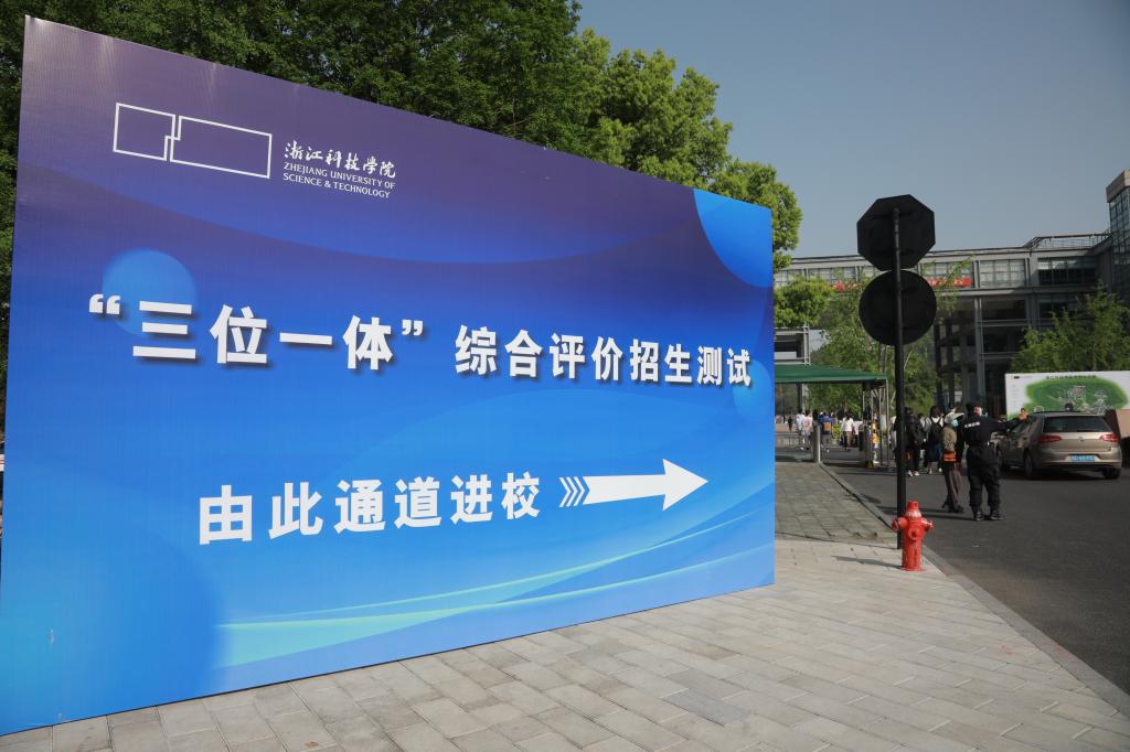 4月16日,浙江科技学院2023年“三位一体”综合评价招生综合测试举行,来自全省各地的考生参加测试。校党委副书记冯军在现场指导相关工作。