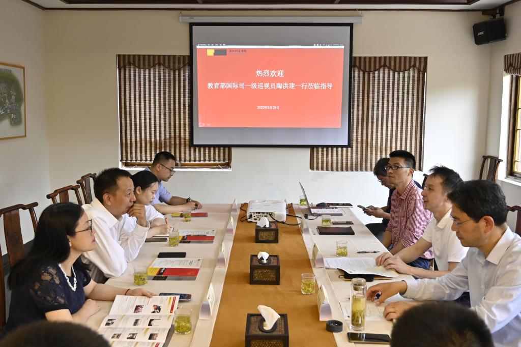 5月29日,教育部国际司一级巡视员陶洪建来校调研指导。校长陈建孟、副校长单胜道参加座谈交流。