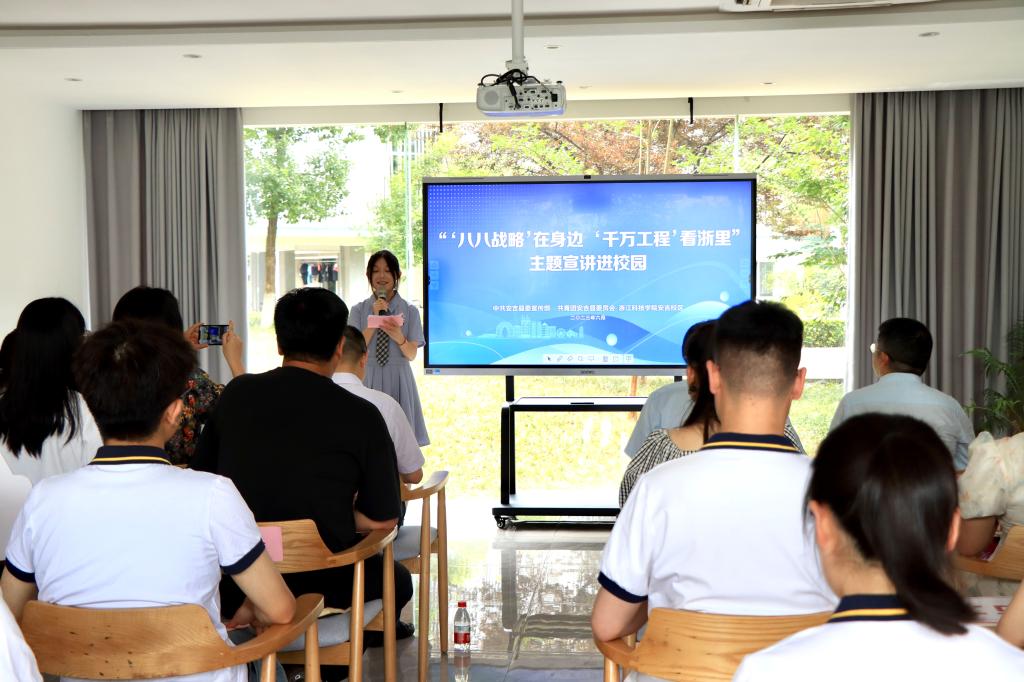 “安吉黄杜村从致富、共富和创富发展历程正是‘八八战略’在之江大地的生动实践。20年来,‘八八战略’不仅让黄杜村实现了精彩的蝶变,也是浙江成功打开高质量发展大门的‘金钥匙’。”6月15日,“‘八八战略’在身边‘千万工程’看浙里”主题宣讲在安吉校区举行。主题宣讲中,安吉青年宣讲员和我校师生宣讲员通过一个个生动、鲜活的案例,和在场听众一起感悟“八八战略”“千万工程”的时代价值。