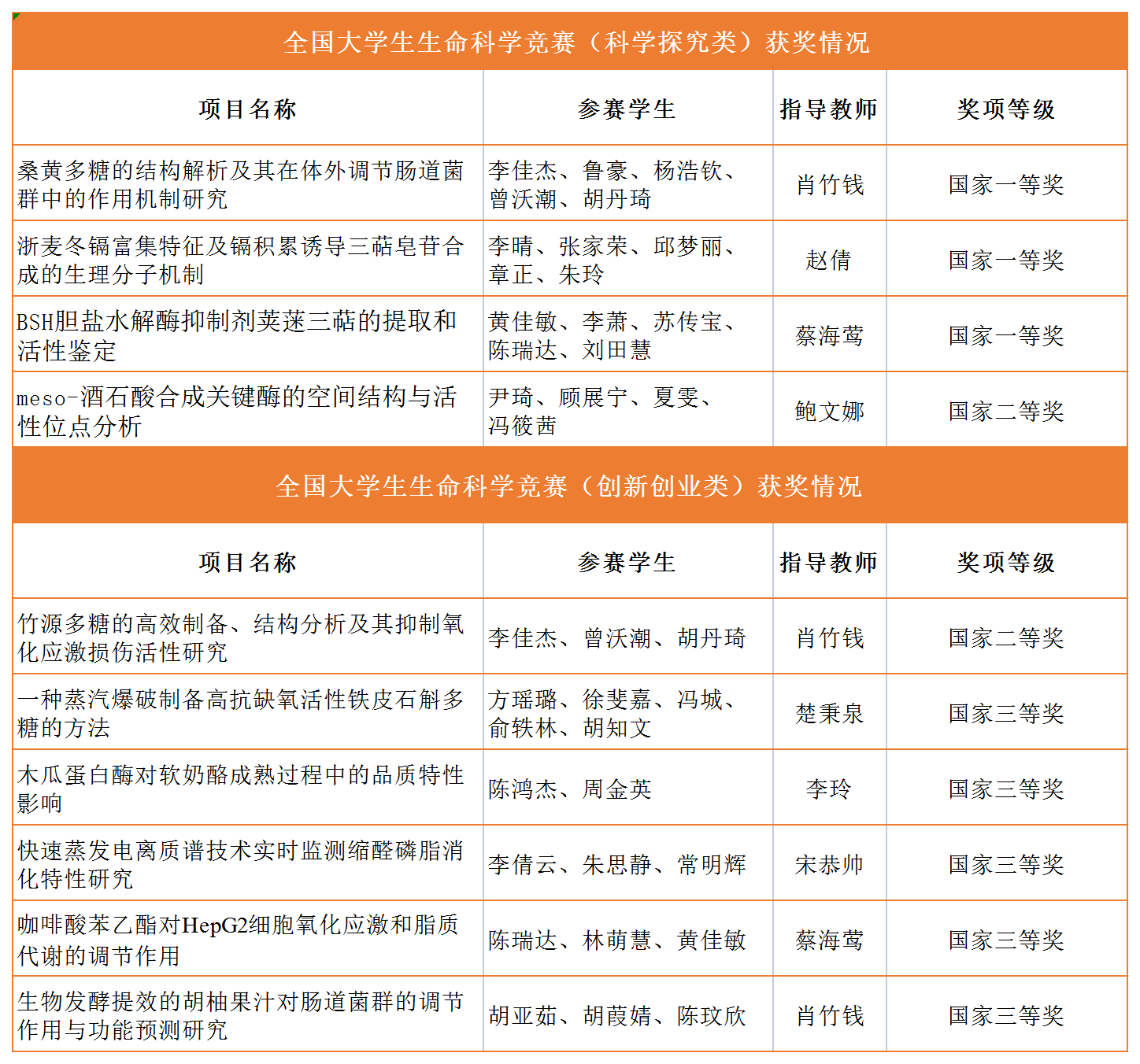 近日,2023年全国大学生生命科学竞赛落下帷幕。我校参赛队伍获得国家级奖10项,其中“科学探究类”赛道获全国一等奖3项、二等奖1项,学校获优秀组织奖;“创新创业类”赛道获全国二等奖1项、三等奖5项。