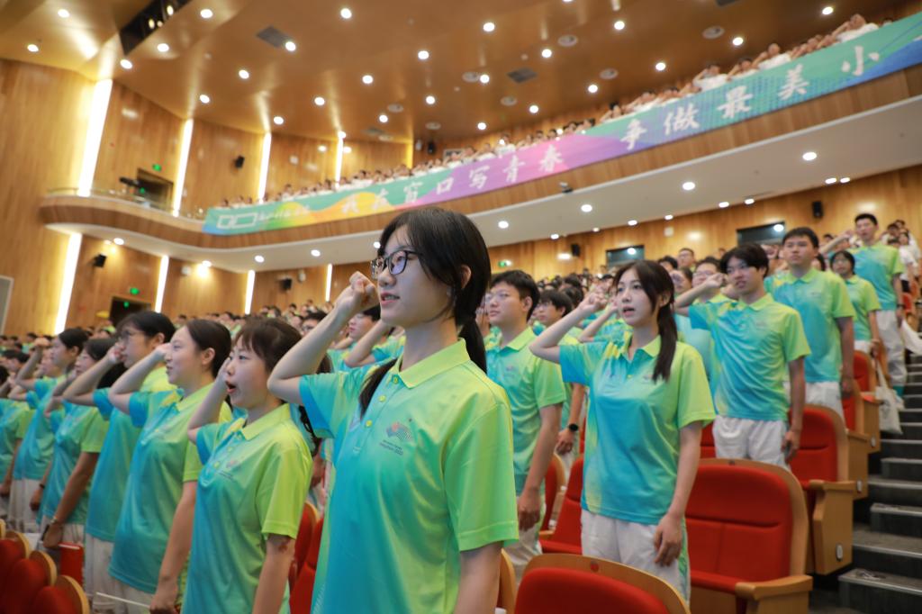 志愿者代表高崇铭同学在发言中说,经过多轮测试赛和反复培训磨砺,我们都已准备好了,我和所有小青荷都会以百分之百的热情投入到赛事服务,为精彩的杭州亚运贡献青春力量。