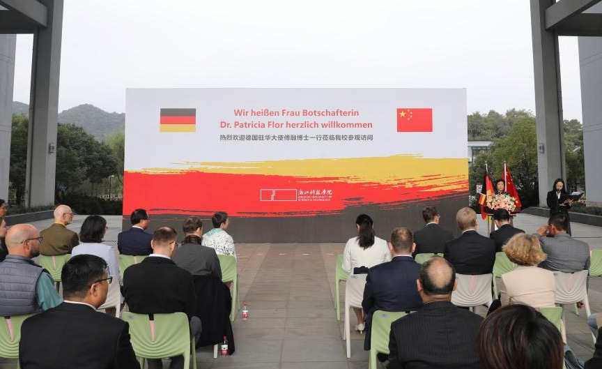 11月8日,德国驻华大使傅融博士(Dr. Patricia Flor)在德国驻上海副总领事卢永胜(Lukas Meyer)先生等陪同下来校参观访问,并受聘为我校名誉教授。浙江省外办、教育厅相关职能部门负责人,校领导等欢迎傅融一行的到来。